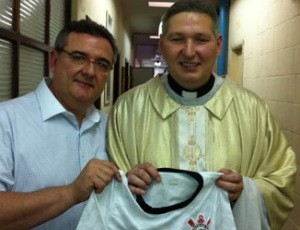 O presidente do Corinthians, Mário Gobbi Filho, fez uma visita, na tarde de sábado, a um corintiano ilustre: o Padre Marcelo Rossi. O mandatário do Timão acompanhou a missa realizada no Santuário Nossa Senhora Mãe de Deus, na zona sul da cidade de São Paulo, e presenteou o Padre com uma camisa oficial da equipe ao final da celebração.